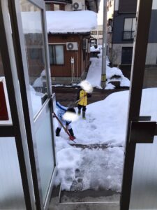 こちらは、子どもたちが雪かきをしている写真です。