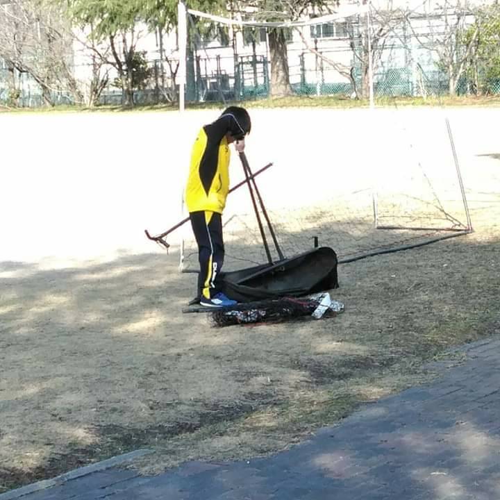 一人でゴールの組み立てを手伝ってくれています。